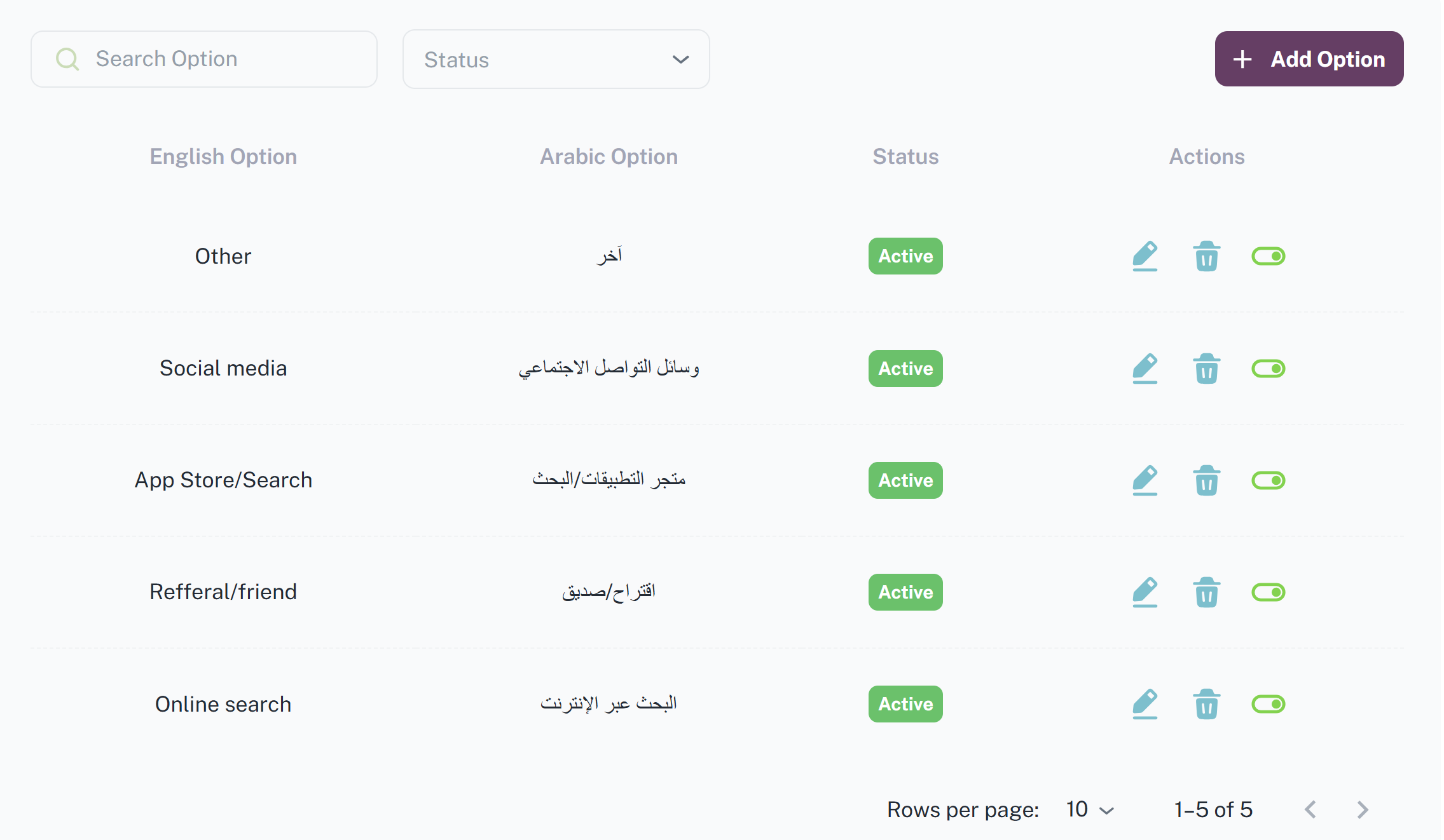 يمكن للأدمن من خلال هذه الواجهة اضافة خيارت حول كيفة العثور على تطبيق جونا والتي ستظهر للمستخدم أثناء عملية التسجيل مع مراعاة لغة التطبيق