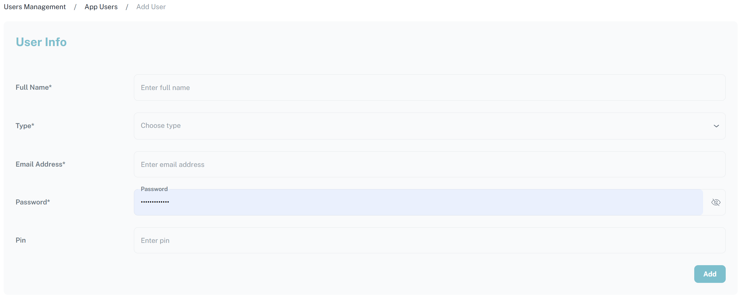 يمكن من خلال الضغط على زر Add user تسجيل حساب جديد ضمن التطبيق