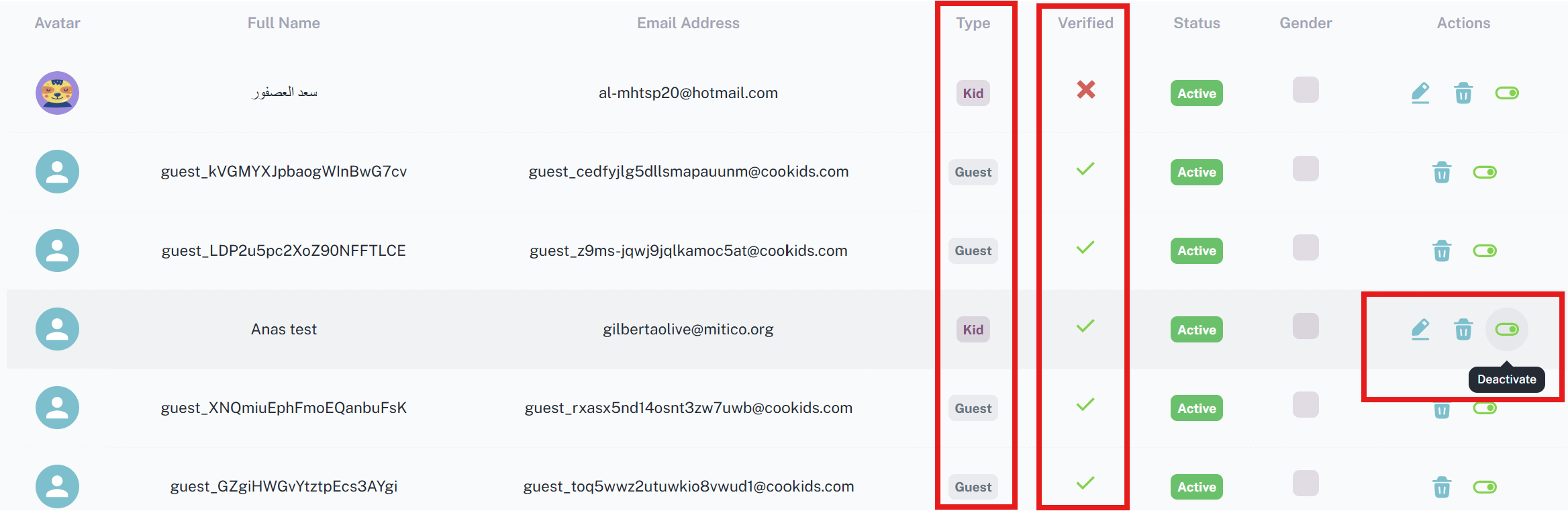 - يمكن من خلال حقل Verified معرفة الحساب الذي لم يقوم بتأكيد حسابه