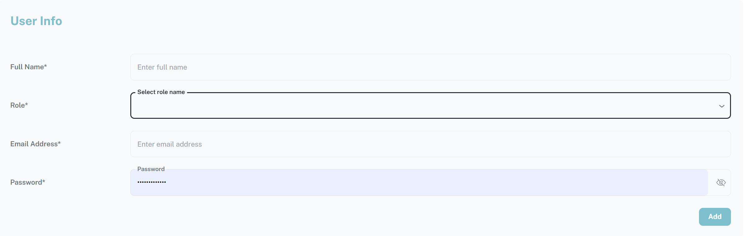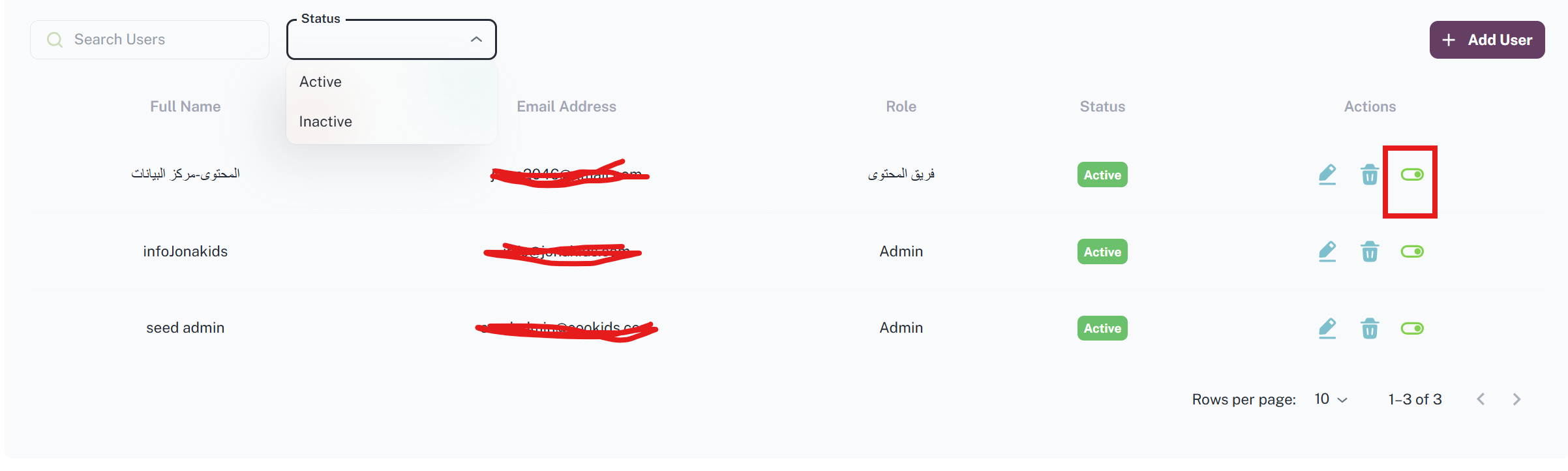 ويمكن من خلال الضغط على زر Add User إضافة حساب مستخدم جديد للمنصة