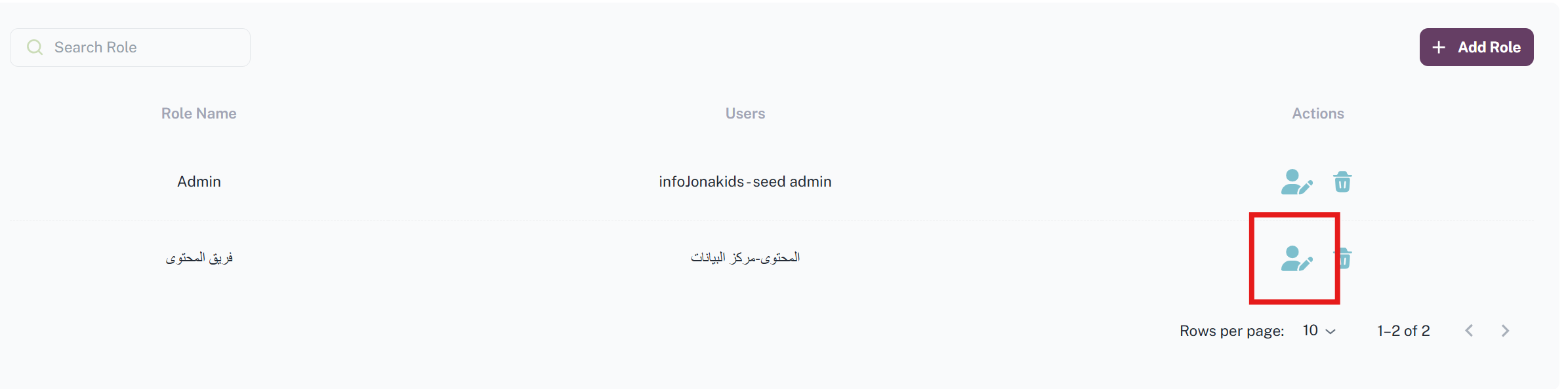User Management - إدارة المستخدمين Roles - الأدوار يمكن من خلال هذه الواجهة إضافة أدوار جديدة والتحكم بالصلاحيات الخاصة بكل دور تمت إضافته سابقاًولإضافة دور جديد من خلال الضغط على زر Add Role السابق التالي